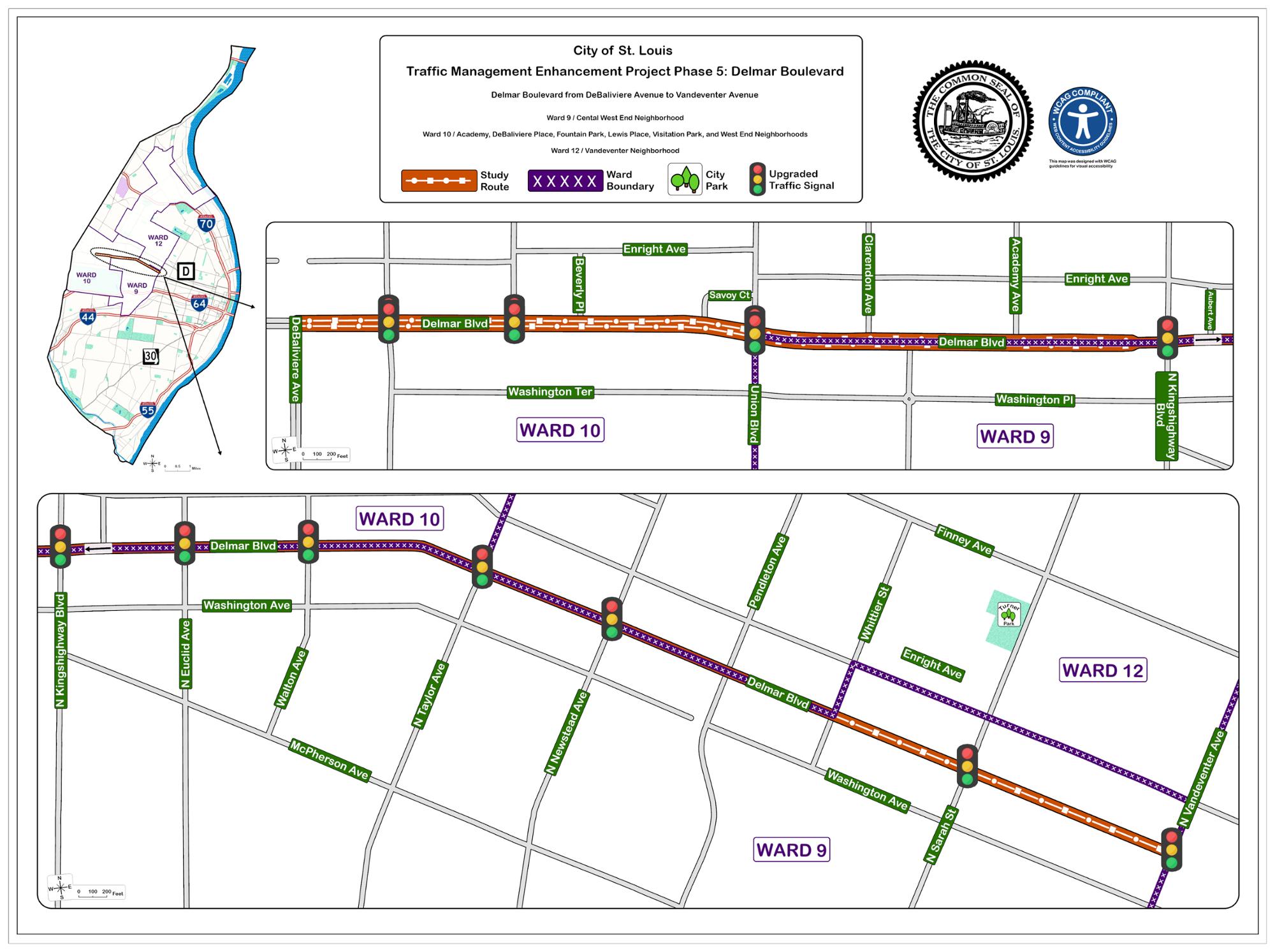 • Upgraded traffic signal controllers and equipment at 10 locations along Delmar Boulevard